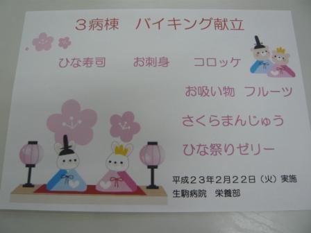 2011.2.22 今月のお好み献立(バイキング)は、3病棟の患者様です
