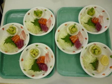メニューは、散らし寿司、お刺身、串カツ、天ぷら、デザートなどです