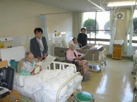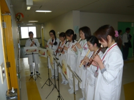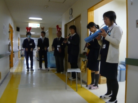 クリスマス音楽会を開催しました 2010年1月23日イベントIKOMA-HP-EVENT-KANRISYA-AKAUNTO 入院患者さまの為にミニクリスマスコンサートが開催されました。 寝たきりの患者さまにも耳で楽しんでいただけるように、 職員のグループがそれぞれ病棟をまわって演奏をしました。 リコーダー、ピアニカ、ハンドベル、マンドリンなど 各自が出来る楽器を持ち寄り演奏したのですが、 思っていた以上の出来栄えでした。 思いがけないクリスマスプレゼントに患者さまにも喜んでいただけました(*^_^*)