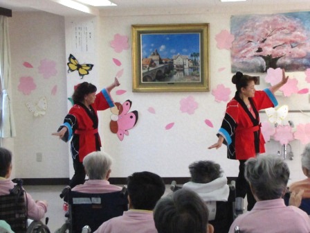 日本舞踊の発表が行われました! 2011年4月19日イベントIKOMA-HP-EVENT-KANRISYA-AKAUNTO 本日はボランティアの方々が当院に日本舞踊を踊りに来てくれました!患者さんも楽しそうに見てましたよ! かなり本格的な舞踊で見ていた職員の私たちもびっくり! 踊りは賑やかなのもいいですよね。元気がもらえますよ! 最後は職員と患者さんも含めてみんなで踊りを踊りました!患者さんもすごく元気になって声をあげながら楽しく踊りました。またぜひ来てくださいね!